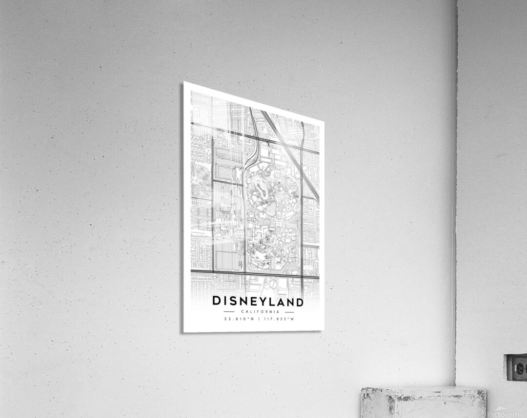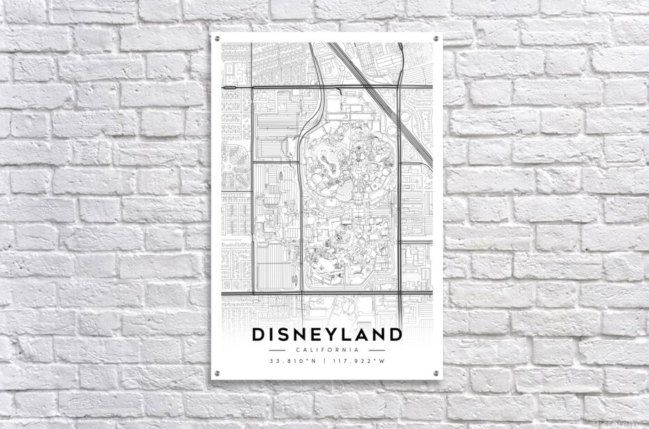 Disneyland California Minimalist Map Print  Picture Frame Printing