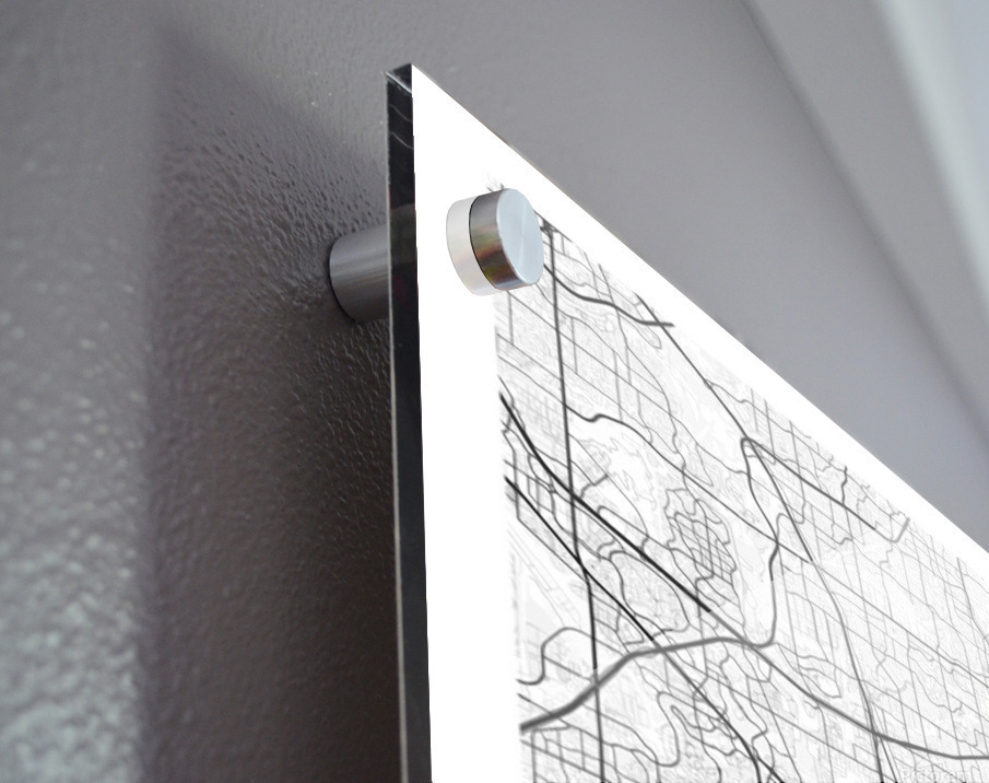 Printed to the edge - Ready to hang - provided with 4 premium polished aluminum stand off ( wall screws and mounting hardware provided )